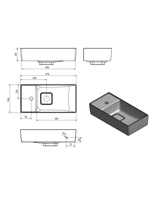 Sapho Small Maxx öntött márvány mosdó 47,5x24cm, balos, fehé
