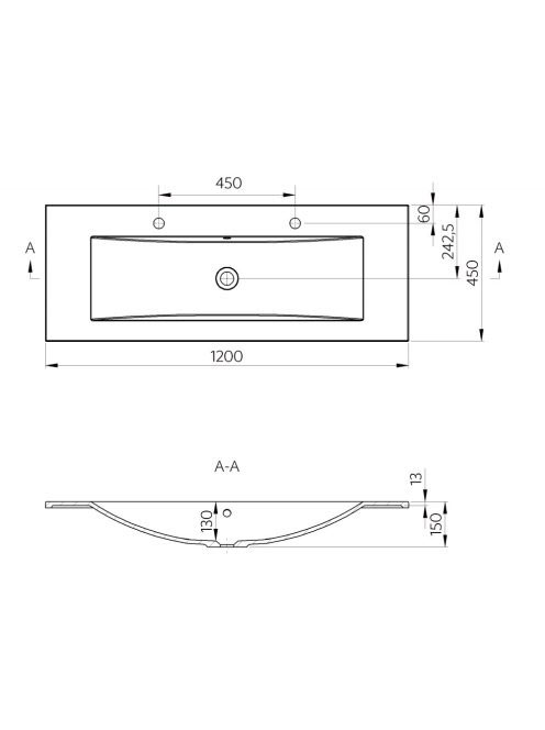 Sapho Yukon öntött márvány mosdó 2 furattal, 120x45 cm, fehé