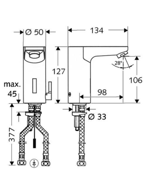 Schell Celis E elektronikus csaptelep kevert vízhez, rejtett tápegységgel, hálózati működtetés, króm 012450699
