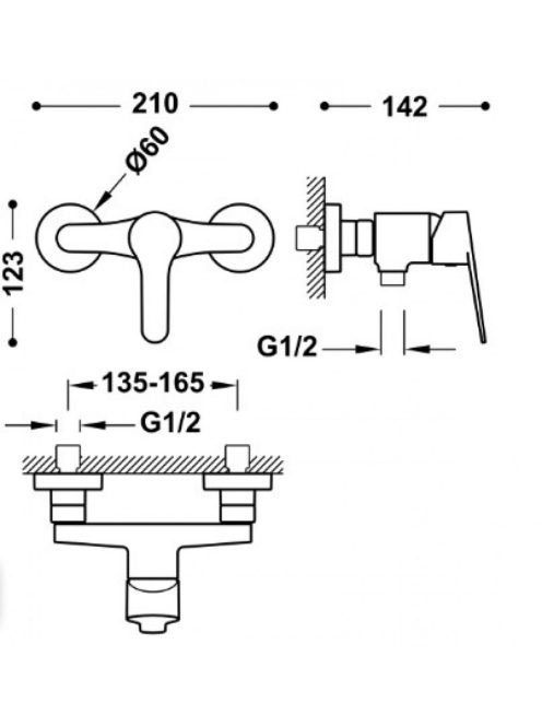 Tres Base Egykaros zuhanycsaptelep szettel, króm 21516710 -Tres Base Egykaros zuhanycsaptelep szettel, króm 21516710 -