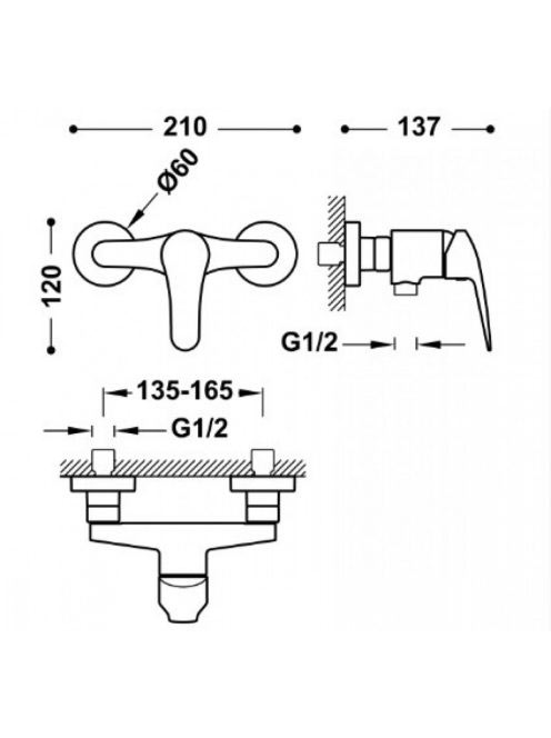 Tres Base Plus Egykaros zuhanycsaptelep szettel, króm 216167