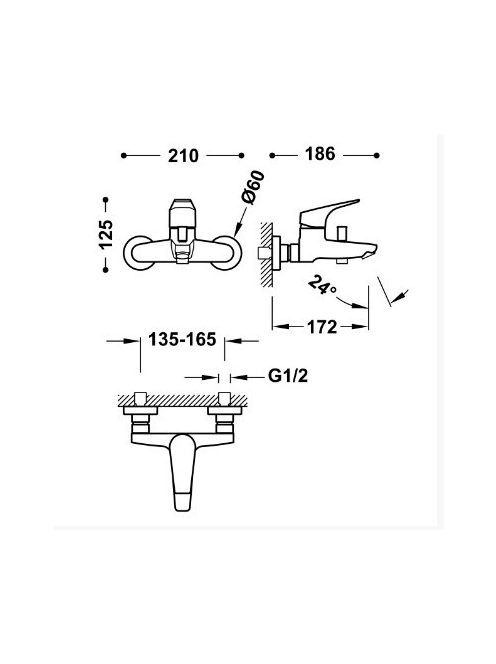 Tres Canigo Egykaros kádtöltő csaptelep szettel, 3 funkciós