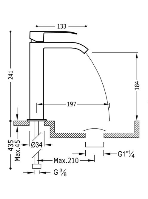 Tres Cuadro Exclusive mosdó csaptelep Cascade kiöntővel Rozsdamentes Acél hatású 00661001AC