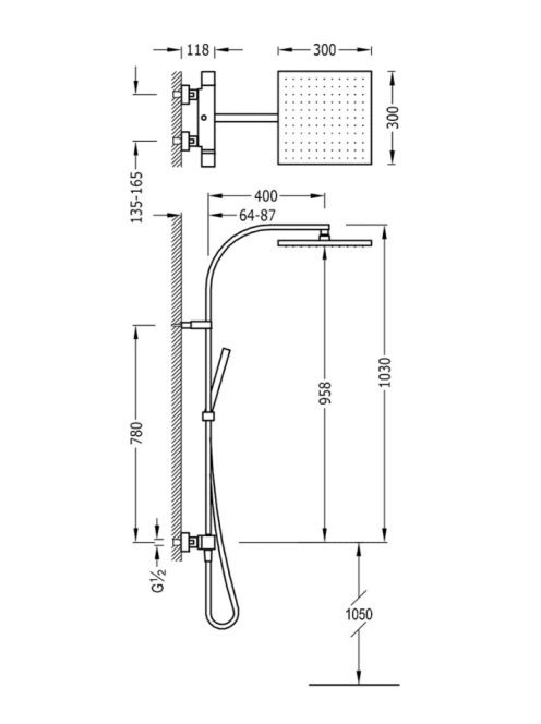 Tres Cuadro Exclusive termosztátos zuhanyrendszer Rozsdament
