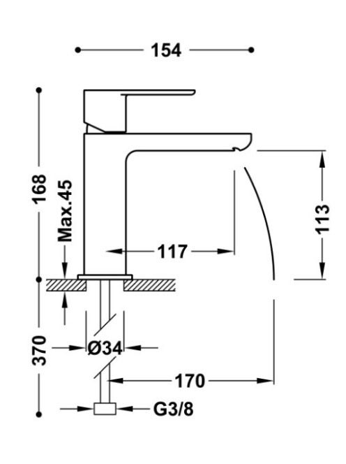 Tres Loft Egykaros mosdó csaptelep Cascade kifolyással króm