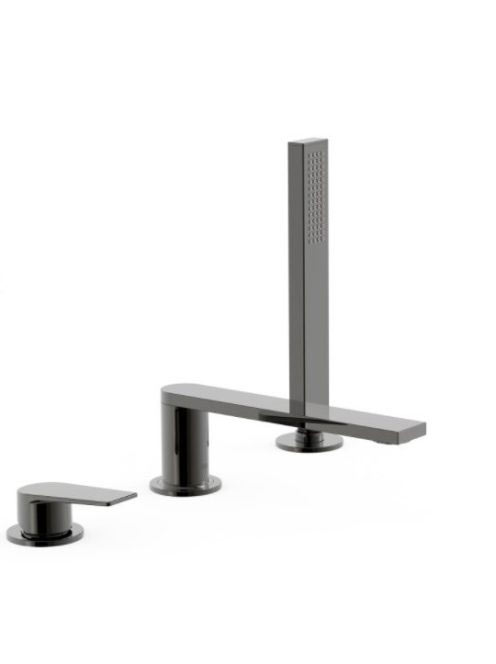 Tres Project 3-lyukú kádtöltő csaptelep zuhanyszettel, Metál