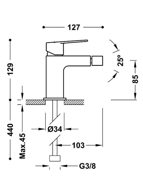 Tres Project bidé csaptelep Click-Clack leeresztővel, króm 2Tres Project bidé csaptelep Click-Clack leeresztővel, króm 2