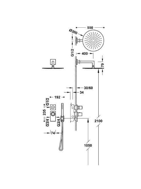 Tres Project falsík alatti termosztátos zuhanyrendszer, mattTres Project falsík alatti termosztátos zuhanyrendszer, matt