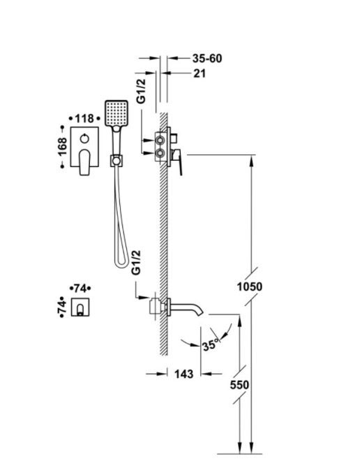 Tres Project falsík alatti zuhany csaptelep kádkifolyóval ésTres Project falsík alatti zuhany csaptelep kádkifolyóval és
