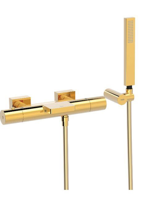 Tres Project termosztátos kádtöltő csaptelep Cascade kifolyóval, Arany 21117409OR