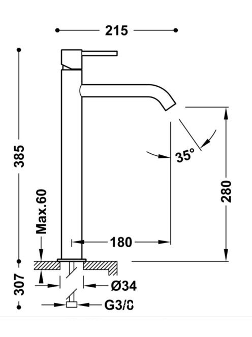 Tres Study Exclusive egykaros magas mosdó csaptelep, matt ar