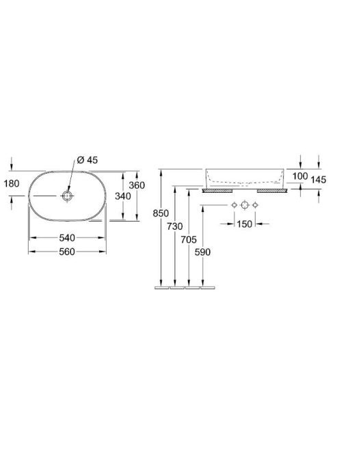 Villeroy & Boch Collaro Pultra ültethető mosdótál 56x36 cm,Villeroy & Boch Collaro Pultra ültethető mosdótál 56x36 cm,