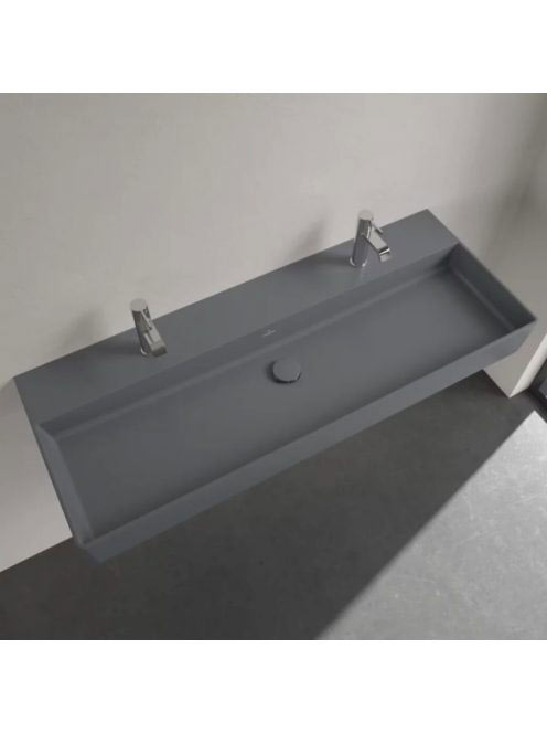 Villeroy & Boch Memento 2.0 Mosdó túlfolyó nélkül 120x47 cm, két csapfurattal, CeramicPlus felület, Grafit 4A22CGI4