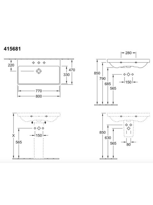 Villeroy & Boch Avento mosdó 80cm, 1 csaplyukkal 41568001 -