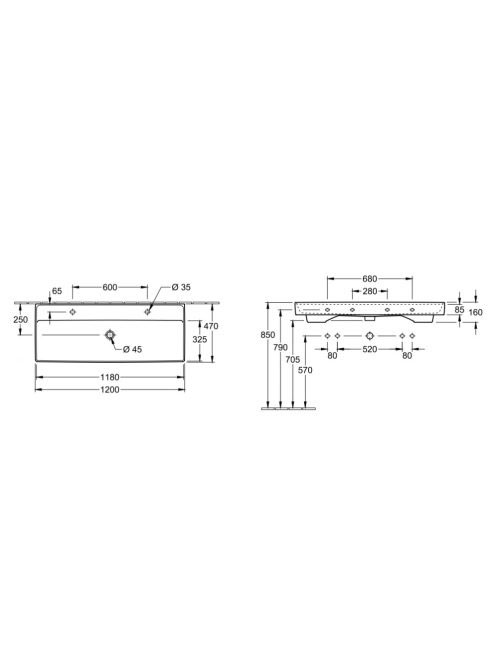 Villeroy & Boch Collaro Beépíthető mosdó 120x47 cm, túlfolyó