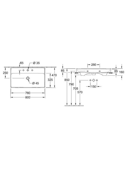 Villeroy & Boch Collaro Beépíthető mosdó 80x47 cm, csiszolt