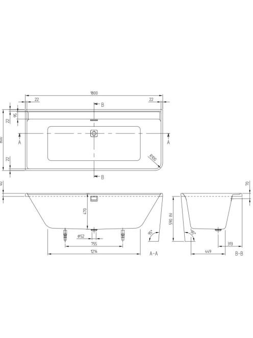 Villeroy & Boch Collaro falhoz illeszthető balos kád 180x80