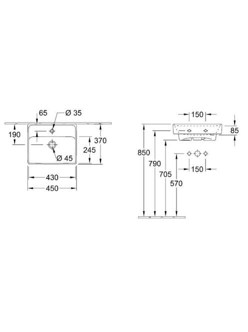 Villeroy & Boch Collaro Kézmosó 45x37 cm, CeramicPlus felüleVilleroy & Boch Collaro Kézmosó 45x37 cm, CeramicPlus felüle