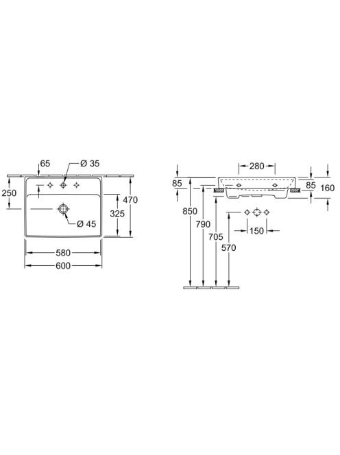 Villeroy & Boch Collaro Mosdó 60x47 cm, csiszolt alsó felüle