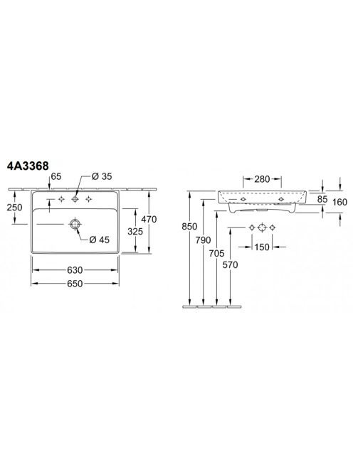 Villeroy & Boch Collaro Mosdó 65x47 cm, CeramicPlus felület, csaplyuk és túlfolyó nélkül, fehér 4A3368R1