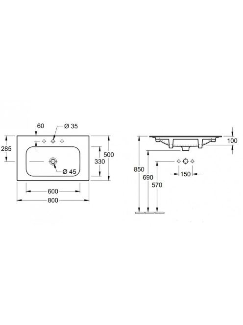Villeroy & Boch Finion kerámia mosdó 80x50 cm túlfolyó nélkü