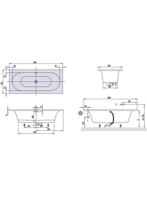 Villeroy & Boch Loop & Friends Oval Duo 1800x800 kád UBA180LVilleroy & Boch Loop & Friends Oval Duo 1800x800 kád UBA180L