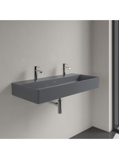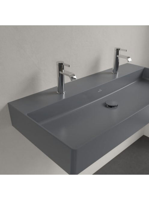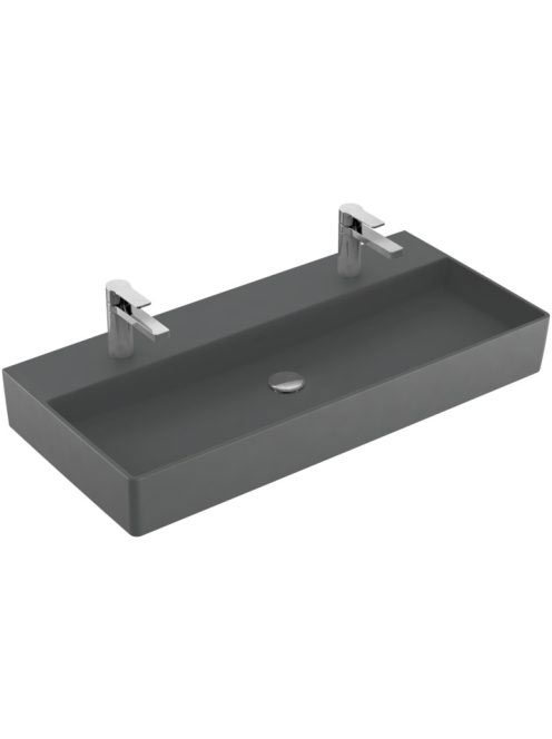 Villeroy & Boch Memento 2.0 Mosdó túlfolyó nélkül 100x47 cm, két csapfurattal, CeramicPlus felület, Grafit 4A221KI4