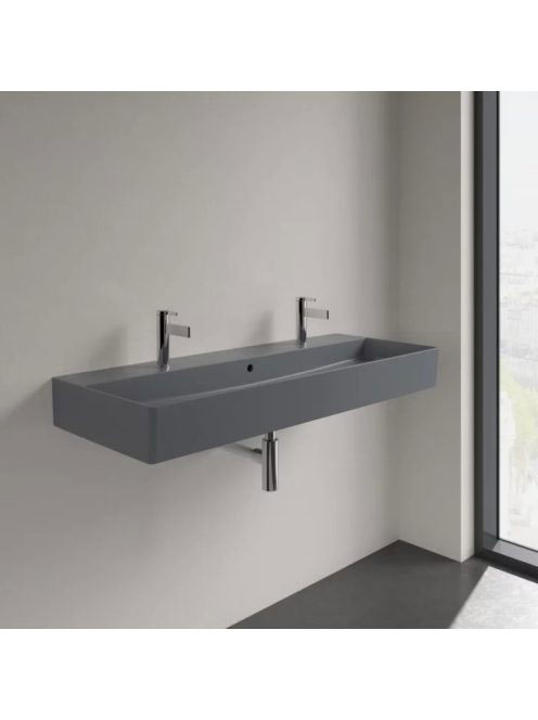 Villeroy & Boch Memento 2.0 Mosdó túlfolyóval 120x47 cm, két csapfurattal, CeramicPlus felület, Grafit 4A22CKI4