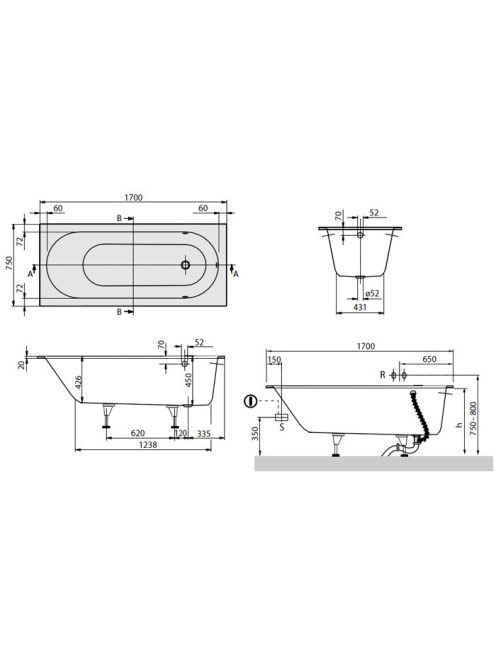 Villeroy & Boch Oberon 170x75 kád UBQ170OBE2V-01 - Fürdőszob