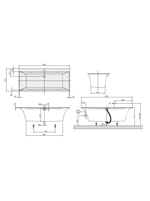 Villeroy & Boch Squaro Edge 12 Fürdőkád 1700 x 750 mm UBQ170