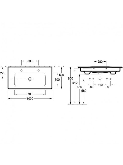 Villeroy & Boch Venticello mosdó 100cm, 2 csaplyukkal 4104AK01