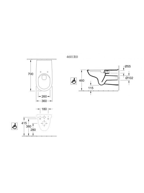 Villeroy & Boch ViCare Perem nélküli, mély öblítésű, fali WC