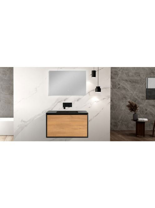 Wellis Tenebra 90 mosdószekrény fiókkal, matt fekete/tölgy W